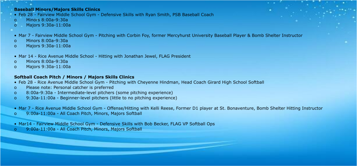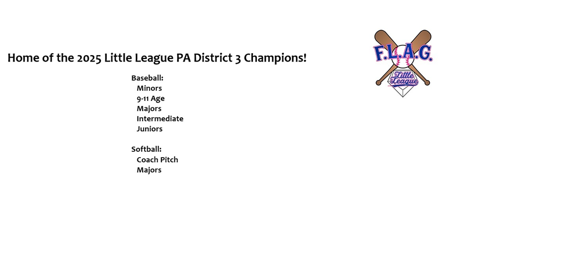 Little League® is an international pastime that has been a fabric of societies throughout the world for 75 years. Since its founding in 1939 by Carl Stotz, Little League has instilled leadership, character, courage, and loyalty in all that participate, including the nearly 1.5 million adult volunteers. Little League can be found in more than 80 countries worldwide with more than 2.4 million children participating each year. Little League has celebrated many milestones due to the dedication of its players, parents, and volunteers. It is F.L.A.G.'s intention to continue this tradition. In addition to providing kids a way to play and enjoy the sport of baseball and softball, F.L.A.G. also strives to play an important role in the Fairview, Lake City, and Girard communities.